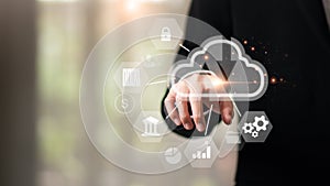 | cloud computing backup technology concept ,Access to server communication services ,database connection with modern hardware and software ,interface for uploading and downloading data |