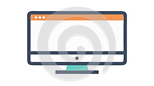 | A simple flat vector icon of a computer monitor or screen display. Represents technology, computing, workspace, or media output device. Clean lines and flat colors offer a modern look, suitable for tech support interfaces, online services platforms, or general office and computer,themed graphics and presentations, vector design Generative AI |