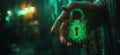 | Digital Padlock Held In Hand With Glowing Green Binary Code, Technology Security Concept, Generated by AI |