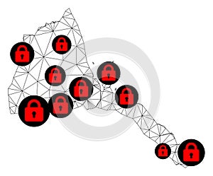 | Polygonal mesh lockdown map of Eritrea. Abstract mesh lines and locks form map of Eritrea. Vector wire frame 2D polygonal line network in black color with red locks. Frame model for safety posters. |