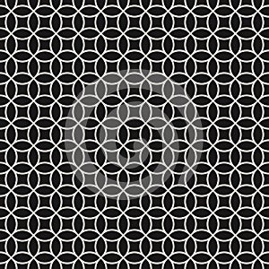 | Circle grid pattern. Subtle vector seamless texture with thin rounded lines, delicate mesh, net, lattice, lace. Simple abstract black and white geometric background, repeat tiles. Minimal dark design |