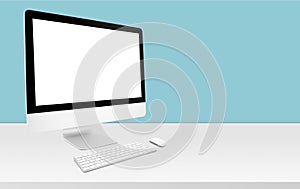 mockup desktop computer display blank screen desk office workspace with mock empty and keyboard |