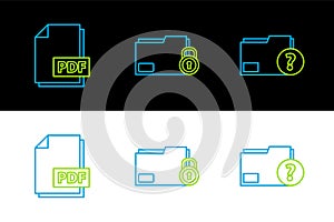 Set line Unknown document folder PDF file and Folder and lock icon. Vector. |