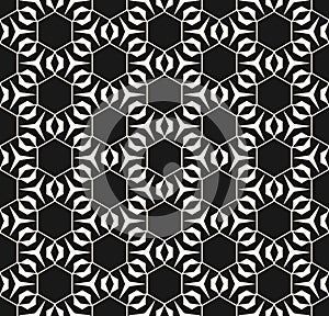 | Geometric seamless pattern with triangular shapes, thin lines, hexagonal grid. Subtle vector geometrical texture. Abstract repeat monochrome background. Stylish dark design for decor, covers, digital |
