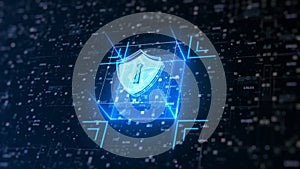 | Hi-tech Shield of cyber security. Digital data network protection. High-speed connection data analysis. Technology data binary code network conveying. Future technology digital background concept. |