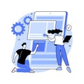 | Woman pushing a glass button for testing UX parameters. User experience concept |